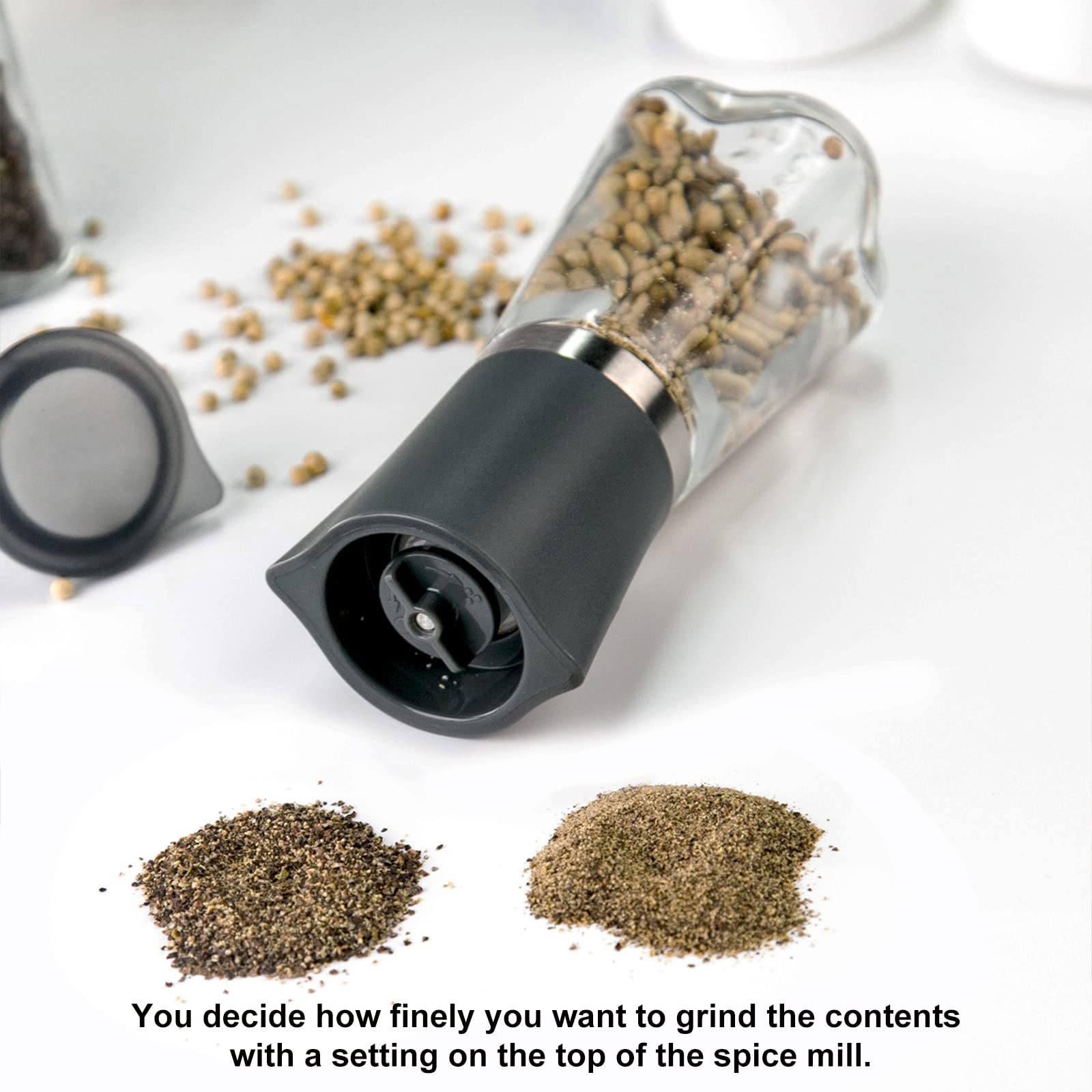 Easy to Use: At the top of each salt and pepper mill, you just twist the knob to set your desired coarseness of salt, pepper, or spice to grind.